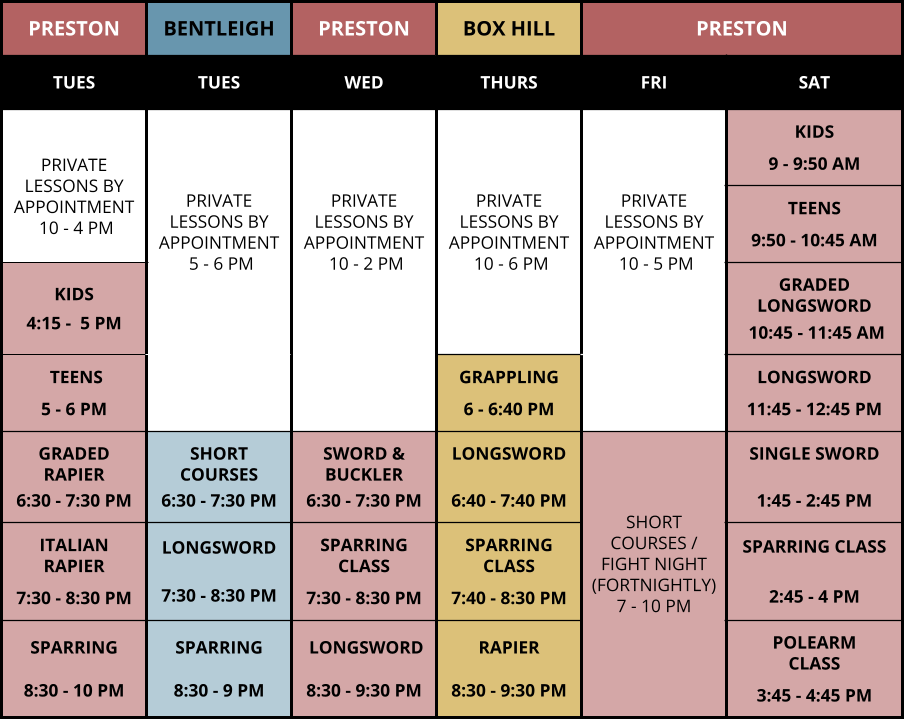 Historical Italian and Spanish Swordfighting as per the medieval and renaissance manuals, taught in Preston, Box Hill, and Bentleigh.