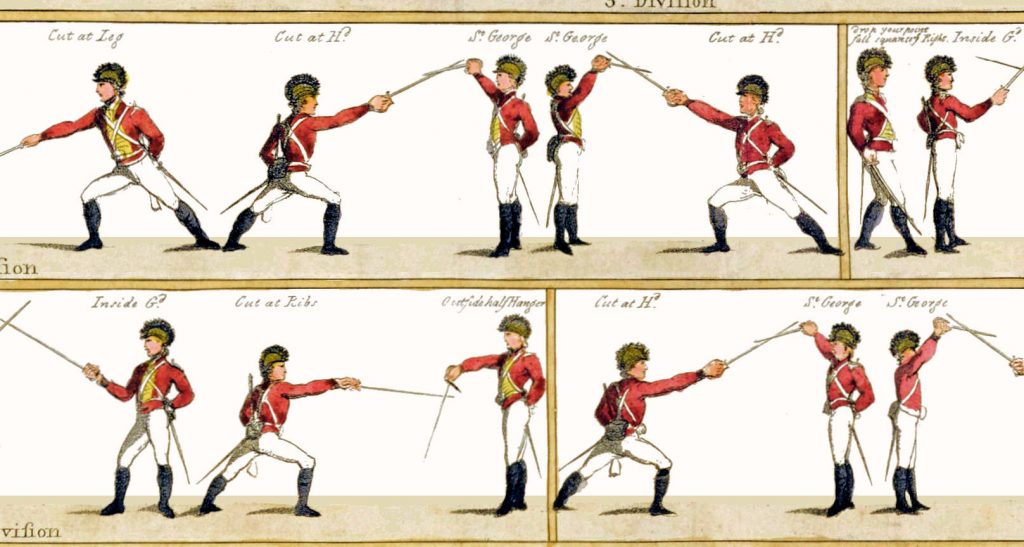 Join us as we work try to learn and hone our understanding of the form and tactics of British military sabre in the Napoleonic era. To round out the course, we will also touch on later sabre systems, and the earlier traditions of smallsword and broadsword fencing. This course will work through sources such as Roworth & Angelo, Silver, McBane, Page, and Waite.